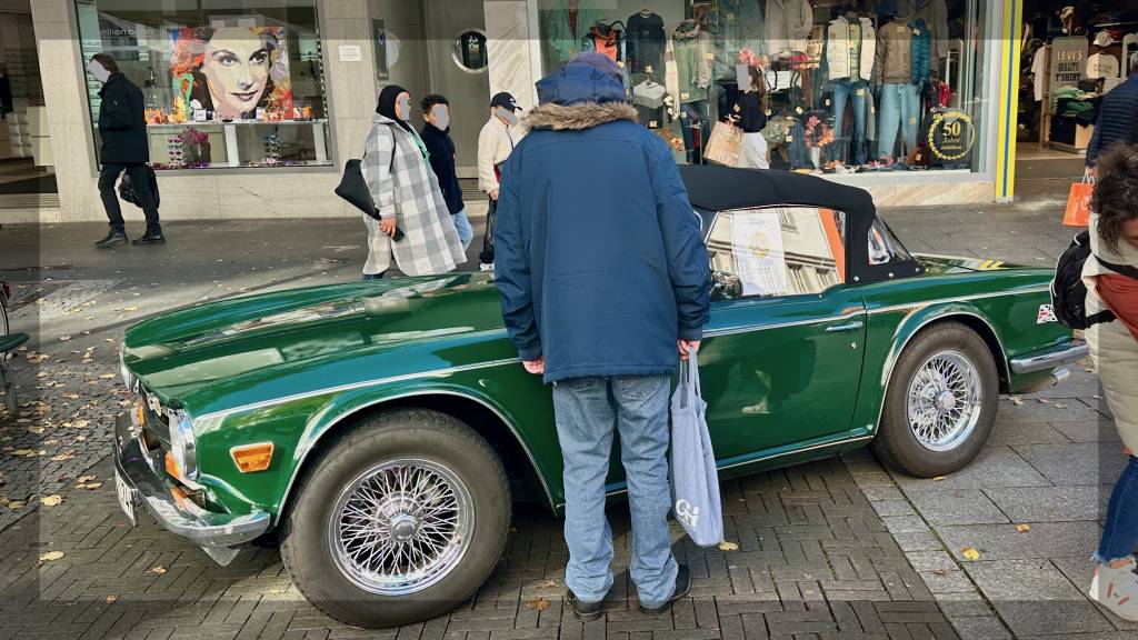 Als Blickfang stand neben dem Verkaufsstand ein blankpolierter Oldtimer, der großes Interesse auf sich zog.